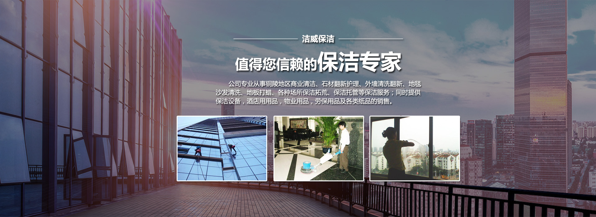 銅陵潔威保潔公司努力打造銅陵保潔行業的優質服務。您的滿意,我們的追求,潔威公司竭誠為您服務 !